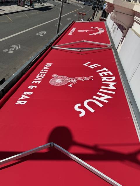 store banne sur mesure entreprise restaurant bar logo imprimé
